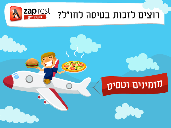2. השתתפו בתחרות דרך אתר zap rest משלוחים או דרך האפליקציה ואולי תזכו בטיסה זוגית!