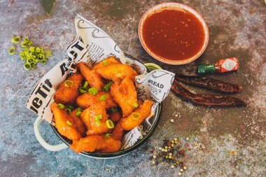כל המנות מוגשות עם רטבים לבחירה.