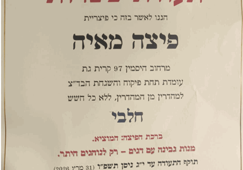 ו | סגור למשלוחים |