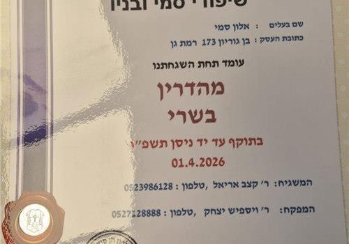סמי ובניו בכשרות מהדרין בהשגחת הרבנות רמת-גן