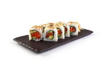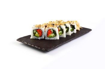 אבוקדו, מלפפון, טמגו, אספרגוס, בטטה, גזר, קנפיו, שיטאקי,גבינת שמנת | קרם טופו, בצל ירוק, עירית